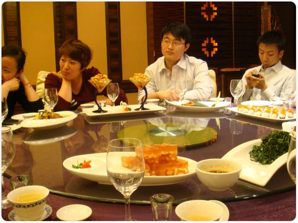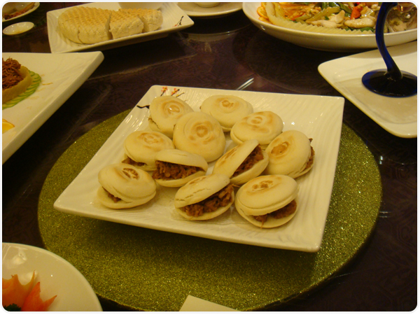 另一道西安文化大餐就是西安飯莊,西安飯莊位于西安市繁華市區-東大街,于鐘樓咫尺之距,交通便利。它建于一九二九年,素以“陜菜正宗”、“陜西風味大全”聞名于世,曾接待過周恩來、葉劍英等黨和國家領導人,張學良、楊虎城等愛國將領及老舍、柳青等文化名流。哈哈,在這里我們不僅能感受西安小吃文化,更重要的是飽眼福的同時可以讓我們真正的一飽口福,經過一天的景點游覽,我們已經饑腸轆轆了!服務員,趕緊上菜嘍!哇,肉夾饃,黃桂柿餅,西安包子、哨子面、粉魚,滿滿一大桌,太讓人解饞了!