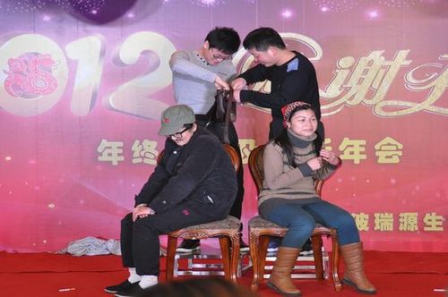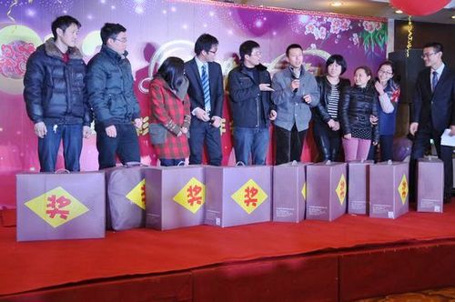 致辭過后,晚會節目正式的開始:整個晚會由四部分組成,優秀員工評選、節目表演,游戲互動和抽獎環節。每個節目都是由員工利用上班的空余時間精心編排,有充滿東北地域風味的二人轉、歡快多姿的廣場舞、惟妙惟肖的啞劇、青春活力的櫻花舞,歌曲聯唱等。年底的忙碌并未給大家的節目質量減分,那一顰一眸都展露出大家對這次晚會的用心。最后,經過“大眾評審”的投票決定,由配置組帶來的啞劇《雕塑下的約會》獲得了本次晚會的最高票數,東北二人轉和商務部帶來的《櫻花舞》分別獲得了第二名和第三名。